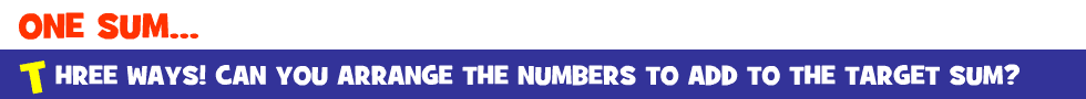 Can you make one sum three different ways? Two challenging levels to try. Click on the game screen to begin.