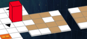 Students guide a rectangular block across a grid, flipping it end-over-end to reach a designated target. The challenge lies in navigating tight spaces and avoiding pitfalls.